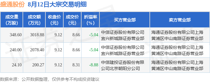 8月12日盛通股份发生3笔大宗交易 成交金额5297.55万元